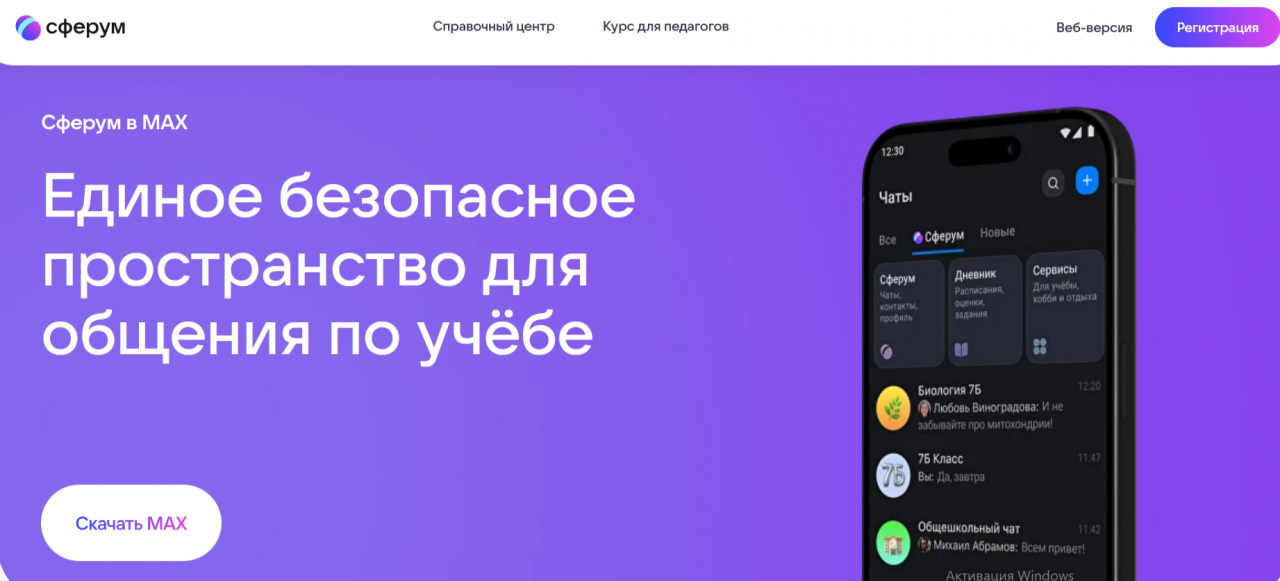 - Безопасность и контроль: Мах интегрируется с образовательной платформой «Сферум», что повышает безопасность школьных коммуникаций и упрощает администрирование.